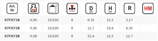 - Promień główki roboczej (R): 6,35 mm
