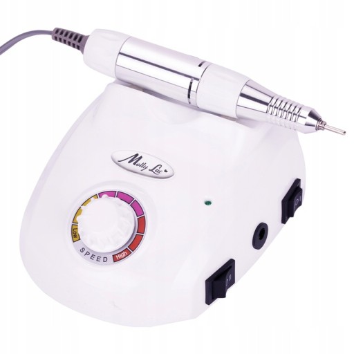Profesjonalna frezarka model DM 208 do manicure i pedicure, z regulacją prędkości do 35 000 obrotów na minutę. Z pomocą tego urządzenia wyrównasz i wypolerujesz paznokcie, usuniesz martwy naskórek czy pozostałości tipsów z paznokci.