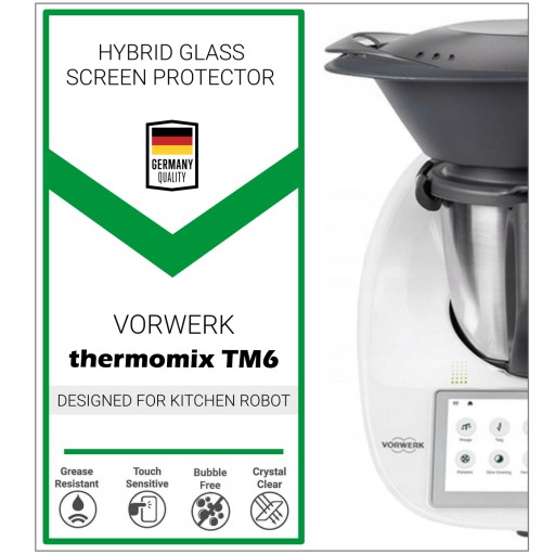 Wysokiej jakości nierysujące się ultra-cienkie szkło hybrydowe zaprojektowane specjalnie na ekran dotykowy robota kuchennego Vorwerk Thermomix TM6.