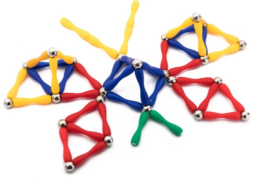 Silne magnesy pozwalają na dowolne łączenie klocków pod różnymi kątami, tak by tworzyć niemal dowolne budowle i konstrukcje!