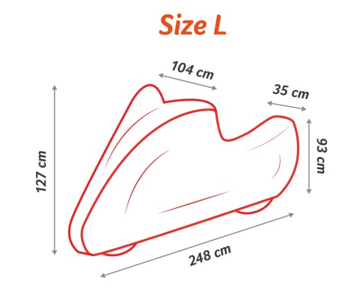 Pokrowiec w przedniej oraz tylnej części posiada solidne gumy ściągające o grubości 1.5cm dzięki czemu idealnie dopasowuje się do kształtu motocykla.
