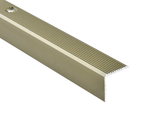 Listwy ochraniają krawędzie stopni schodowych wyłożonych płytkami ceramicznymi, drewnem lub panelami. Umożliwiają estetyczne połączenie różnego rodzaju powierzchni. Profile są ryflowane dzięki czemu stanowią doskonałe zabezpieczenie antypoślizgowe. Całość wykonana jest z aluminium anodowanego na kolor szampan.