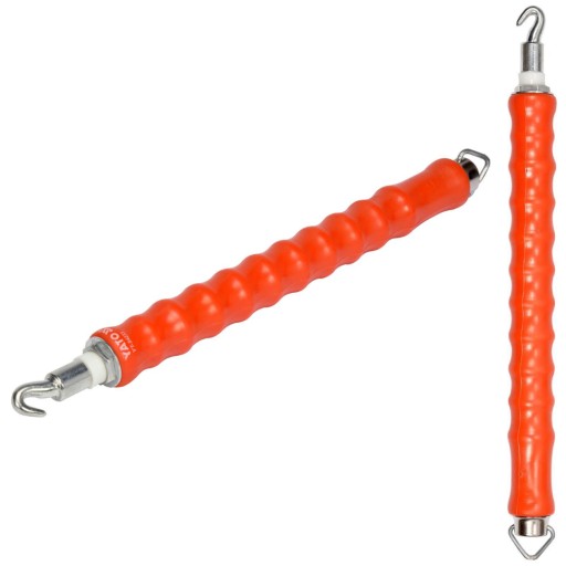 Silne pociągnięcie rękojeści powoduje trzykrotne obrócenie się haka i skręcanie zaczepionego na nim drutu. Uchwyt klucza powleczony miękkim tworzywem. Wyposażony w praktyczny haczyk do wieszania narzędzia. Do wiązania należy używać drutu wiązałkowego zakończonego „oczkami”.
