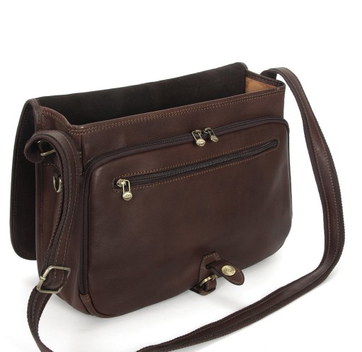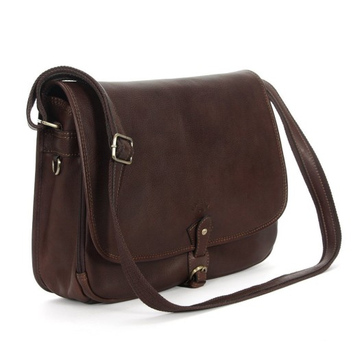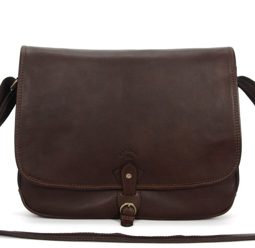 Torba listonoszka ciemnobrązowa skóra licowa