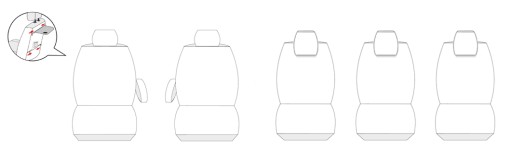 Prezentowane pokrowce są w 100% dopasowane do oryginalnej tapicerki. Powstały na podstawie foteli z konketnych modeli samochodów. Wszystkie otwory są gotowe i estetycznie obszyte, np. otwory na zagłówki, elementy konstrukcyjne, uchwyty, profile foteli. Zawierają wszystkie typowe dla danego modelu samochodu elementy, takie jak podłokietniki, standardowe lub nachodzące zagłówki, otwory na kieszenie i stoliki czy też kolumny (nadkola) jeśli takie występują. Nie zasłaniają również zaczepów na ISOFIX na foteliki dziecięce. Wszystkie informacje dotyczące danego modelu znajdziecie Państwo w specyfikacji poniżej.
