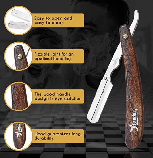 - Ręcznie wykonana z pasją i profesjonalizmem prosta brzytwa z drewnianą rączką to doskonałe narzędzie do doskonałego golenia.