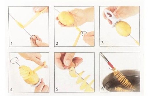 Z naszą maszynką przygotowanie jej jest bardzo szybkie i proste. Wystarczy wykroić spiralę z ziemniaka, którego później możesz zgrillować, upiec lub usmażyć we frytkownicy.