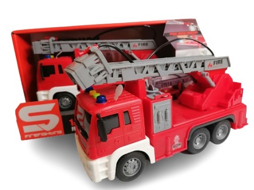 Czerwony samochód straży pożarnej to marzenie każdego małego strażaka. Świetne autko z wysuwaną drabiną, pompką pompującą wodę do sikawki, efektami dźwiękowymi i świetlnymi pozwoli każdemu małemu strażakowi na wyśmienitą zabawę.