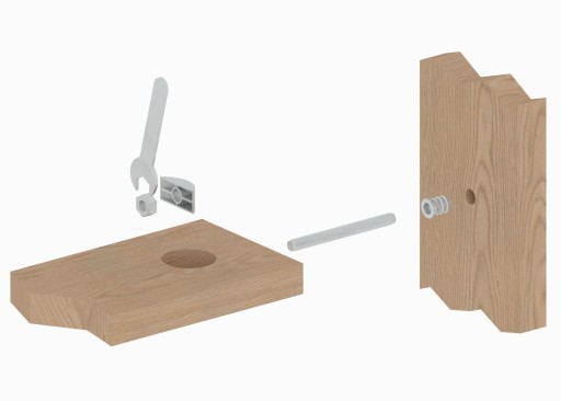 Systemy do połączeń Moon Line jest powszechnie stosowany meblach, stołach, łóżkach oraz schodach. Dzięki unikalnemu rozwiązaniu, prostocie budowy, z powodzeniem zastępuje stare nieporęczne obejmy do stołów, czy blachy do łóżka. Bez problemów sprawdza się w połączeniach noga stołu – oskrzynią lub połączenie listwy bocznej łóżka z jego szczytem. Jest to system w którym pracuje „metal z metalem” – metalowa mufa wraz z półksiężycem dociskanym przez nakrętkę. Złącze o rozmiarze M10, przeznaczone pod otwór fi 35 mm. Poniżej przedstawiamy rysunek techniczny złącza oraz podkładki znajdującej się w jego składzie.