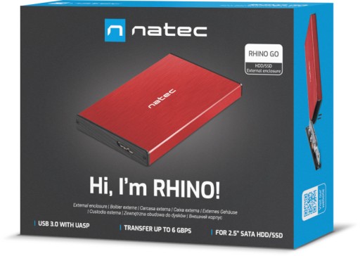 Obudowa zewnętrzna Rhino GO oferuje bardzo szybki transfer danych przy zachowaniu dużej funkcjonalności.Dzięki zastosowaniu portu w technologii USB 3.0 z protokołem UASP, użytkownik zyskuje możliwość przesyłania danych z prędkością nawet 6 Gb/s.Obudowa obsługuje interfejs SATA I/II/III 9.5 mm oraz zarówno dyski HDD i SSD o pojemności dochodzącej aż do 4TB.