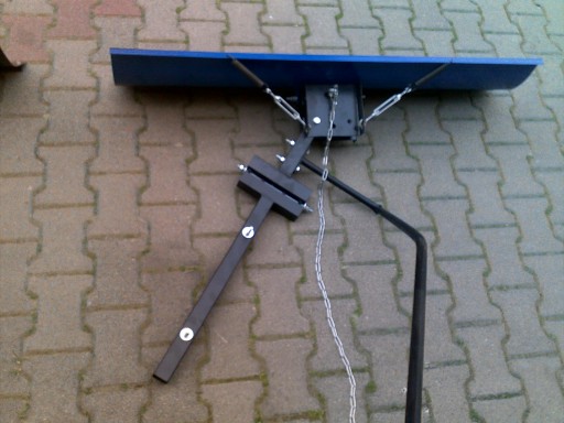 Sprzedam pług 100 cm na konstrukcji ruchomej, reaguje na nierówności np. kamień, trawa, nierówna kostka , jest ruchomy na sprężynach. Pług odgarnia śnieg w lewą , prawą stronę i na wprost .Posiada gumę oraz rączkę do unoszenia ręcznego , wyposażony w łańcuszek do ręcznego transportu..Rączka może być montowana z lewej lub prawej strony .Mocowanie jest bardzo proste , tak jak i niezależne od konstrukcji pługa, mechanizmu uchylnego, mocowanie montuje się na stałe do pojazdu( za pomocą śrub montażowych które są w zestawie ) np. quada , ciągniczka, kosiarki , różnych pojazdów mechanicznych.Pług ma bardzo solidną konstrukcję i również nadaje się pod wyciągarkę elektryczną..