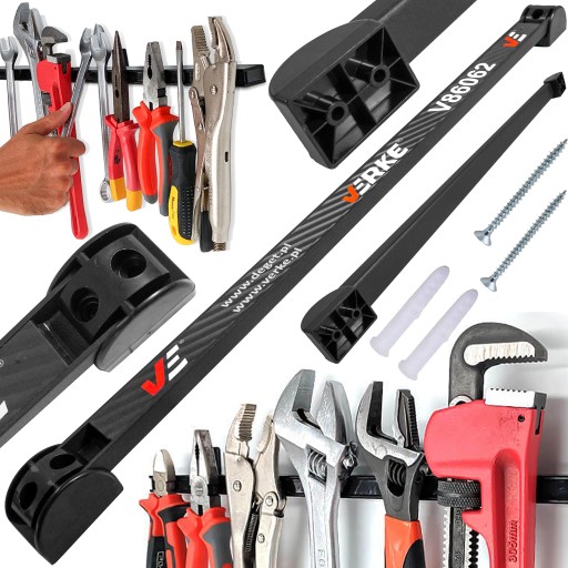 Niezbędna urządzenie w każdym warsztacie lub garażu. Ułatwia pracę poprzez uporządkowanie i wyeksponowanie najbardziej potrzebnych narzędzi. Przechowywanie narzędzi takich jak klucze, młotki, wkrętaki, szczypce itd. Profil stalowy wypełniony magnesem. Możliwość montażu na ścianie z cegły, płyty gipsowej oraz drewna.