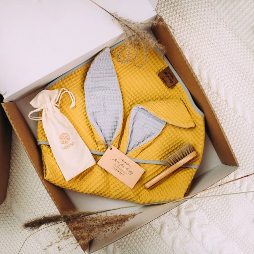FLOO otulacz kocyk KRÓLICZEK wafel MUSZTARDOWY