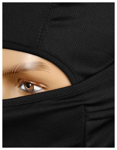 Regulowany otwór na oczy, przyłbica umożliwia częściowe lub całkowite odsłonięcie twarzy. Bez ściągania kominiarki możliwe jest picie, jedzenie, palenie.