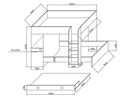 - dolne spanie jest wysuwane na kółkach - może również pełnić opcję szuflady