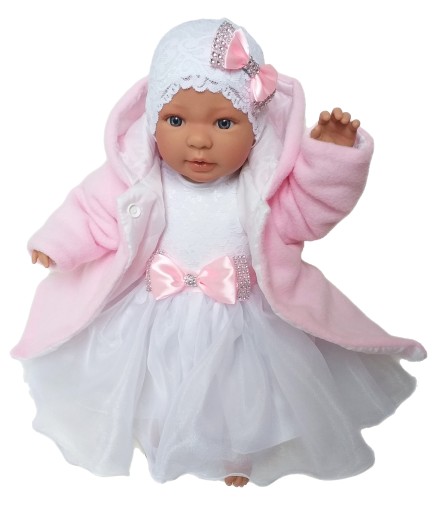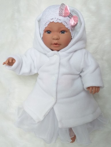 Płaszczyk wykonany z białego lub różowego polaru (do wyboru), na podszewce (ocieplony - grubość ocieplenia zależny od pory roku), zapinane na napy