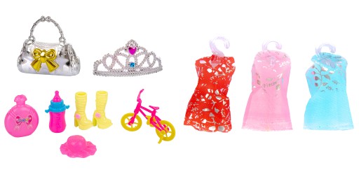 - Kolorowe ubranka i akcesoria dopasowane do każdej lalki typu Barbie