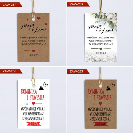 Zawieszki na butelki ze sznureczkiem w komplecie.