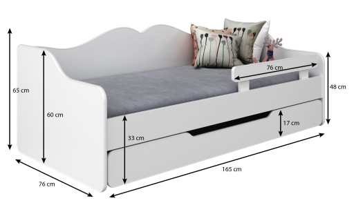 Łóżko zawiera szufladę z materacem, która pełni funkcję drugiego łóżka. Taki zestaw świetnie sprawdzi się dla rodzeństwa lub dla przyjaciół zaproszonych na noc.