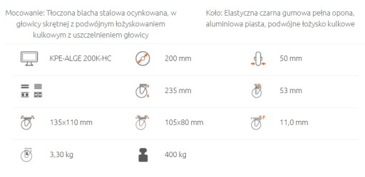 Koło fi 200 mm alu guma z hamulcem.