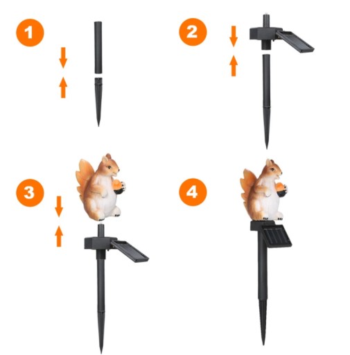 Piękny kształt wiewiórki i wodoodporny design, łatwe do zainstalowania i użytkowania. Świetnie nadaje się do stosowania w oświetleniu dekoracyjnym ogrodu na zewnątrz.