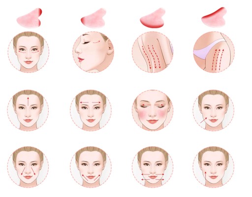 Każda ze stron kamienia Gua Sha została zaprojektowana tak, aby masować odpowiednią część ciała: