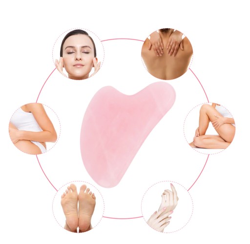 KAMIEŃ GUA SHA Z KWARCU MASAŻER RÓŻOWY DO TWARZY