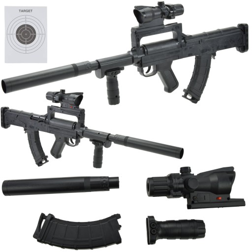 - Karabin wykonany jest z wytrzymałego tworzywa ABS, który jest odporny na wgniecenia, przetarcia i zarysowania co pozwala na utrzymanie karabinu w idealnym stanie wizualnym