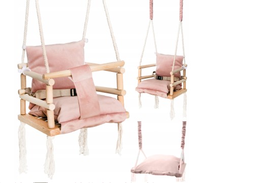 Huśtawka wykonana z delikatnego aksamitno pluszowego materiału, który jest bardzo miękki i delikatny w dotyku oraz bardzo wytrzymały.