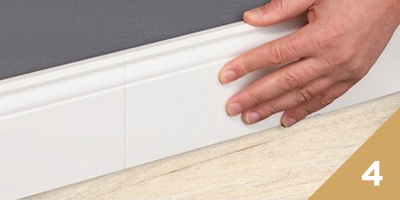 4. Przytwierdź listwę do ściany w odpowiednim miejscu. Przytrzymaj chwilę aż klej zacznie wiązać.