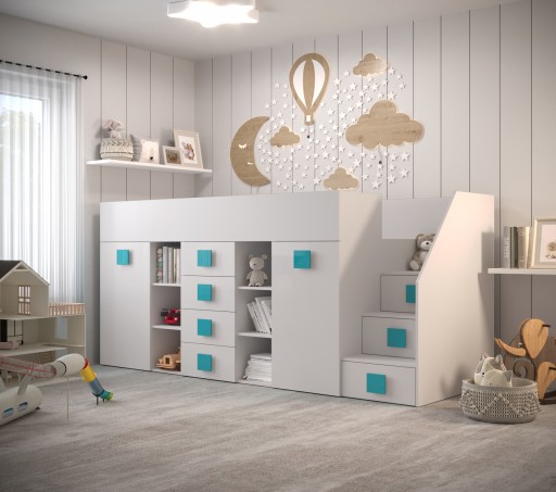 biały + biały połysk + uchwyty: turkusowe