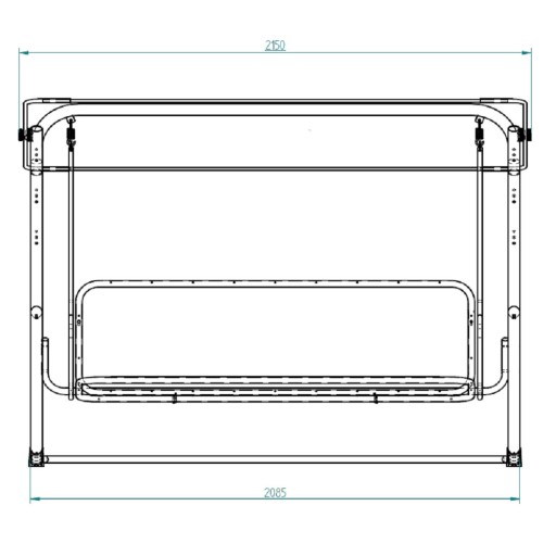 - Dane Techniczne: Grubość rur: 1,5 mm Średnica rury: 50 mm Wymiary siedziska: 170 x 55 x 55 cm Wymiary poduszki: 2* 175 x 54 x 8/10 cm Wymiary daszka 214 x 120 cm, z wolantem 250 x 160 cm Podłokietniki: 30 x 40 x 15 cm.