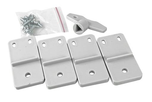 - 4 uchwyty z tworzywa do mocowania szafy oraz wkręty nierdzewne do ich przykręcania