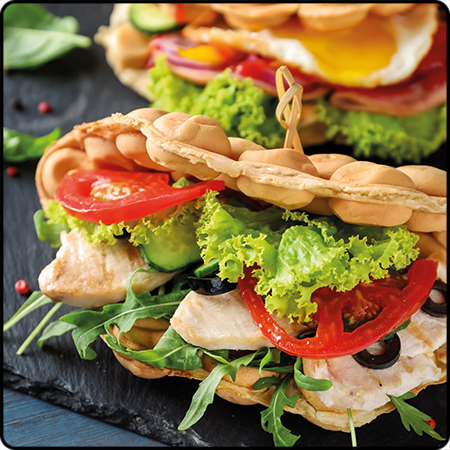Zaskocz swoich gości bąbelkowymi goframi. Będą zachwyceni, gdy poczęstujesz ich gofrem upieczonym w kształcie bąbelków, polanych musem owocowym lub słodką polewą. Z owocami lub bitą śmietaną. Bąbelkowe kawałki ciasta doskonale nadają się na foundue. Skorzystaj z waflownicy, by przygotować pyszne, chrupiące wafelki, w które możesz nałożyć lody lub krem. Nie lubisz słodkości? A może jesteś na diecie? Na bąbelkowe placki możesz z powodzeniem nałożyć wytrawne dodatki, takie jak warzywa, pasty, wędliny, sery czy sosy.