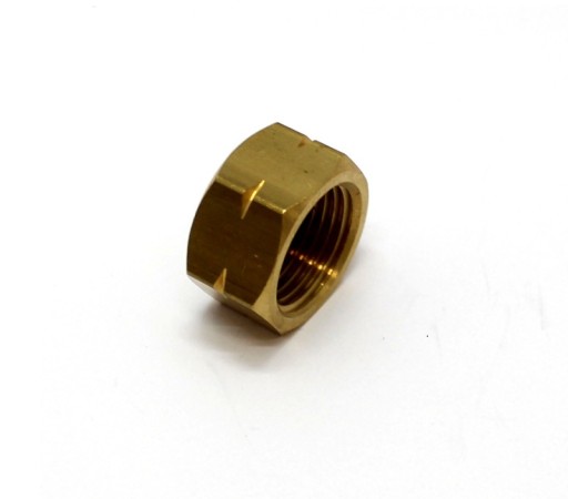 Nakrętka w całości mosiężna, wyposażona w uszczelkę.