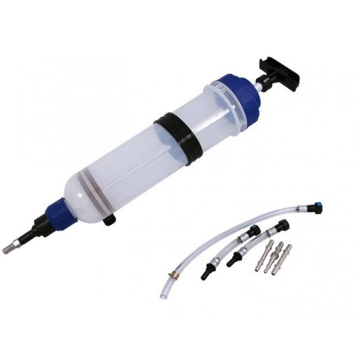 Ręczna odsysarka o pojemności 1,5l. Urządzenie przeznaczone do odsysania oraz wtłaczania oleju oraz innych płynów eksploatacyjnych w trudno dostępne miejsca.