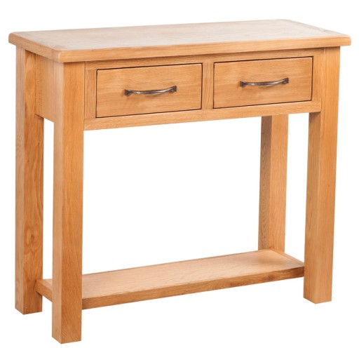 Styl rustykalny potrafi nadać niesamowitego charakter do każdego wnętrza. Prosty wystrój nawiązujący do wiejskich klimatów idealnie sprawdzi się nie tylko do poza miejskimi budynkami, ale będzie idealnie pozować jako motyw przewodni mieszkania w centrum dużego miasta. Przytulny wiejski kącik wewnątrz zgiełku miejskiego życia jest idealną odskocznią dla każdego. Wypoczynek w takim miejscu jest niebywałym przeżyciem. To tak jakby nagle wejść do innego świata. Konsola Vige idealnie oddaje ten klimat. Z nią wszędzie poczujesz się bliżej natury. Wykonana z naturalnego drewna dębowego sprawia niezwykłe wrażenie. Nie bez powodu dąb nazywany jest królewskim drzewem. Jego szeroki blat zapewnia odpowiednią ilość miejsca na wszystkie potrzebne przedmioty. Dwie funkcjonalne szuflady zapewniają odpowiednią ilość miejsca do przechowywania wszelkiego rodzaju drobiazgów oraz potrzebnych przedmiotów. Specjalna dolna półka pozwala na umieszczenie dodatków oraz dekoracji, które jeszcze bardziej oddadzą klimat rustykalnego miejsca. Prosta budowa konsoli jest niezwykle dobrze przemyślaną ideą. Podkreśla prostotę natury oraz nie odwraca uwagi od szlachetnej faktury drewna dębowego. To właśnie dąb gra pierwszą rolę w stoliku Vige.