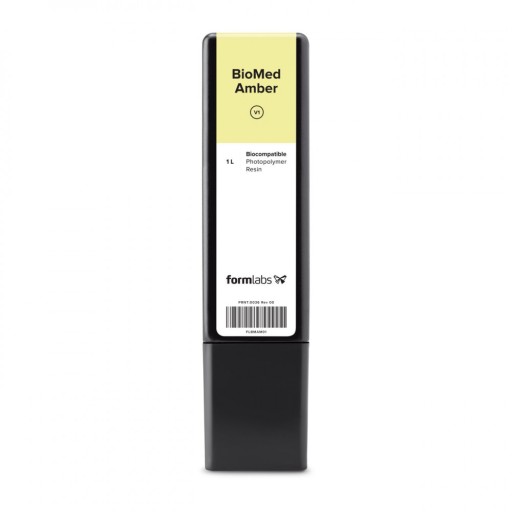 Żywica Biomed Amber Resin jest wytrzymałym i sztywnym biokompatybilnym materiałem do wydruków, które wymagają krótkotrwałego kontaktu ze skórą lub błonami śluzowymi.