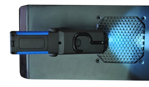 Dzięki antypoślizgowej powłoce, urządzenie pewnie leży w dłoni. Uchylna podstawa, wbudowany podwójny magnes oraz obrotowy haczyk do zaczepiania, czynią latarkę bardzo uniwersalną i komfortową w użytkowaniu.