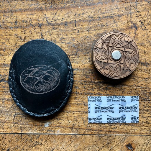 Etui skórzane, które idealni mieści nożyk bez konieczności demontowania żyletki.