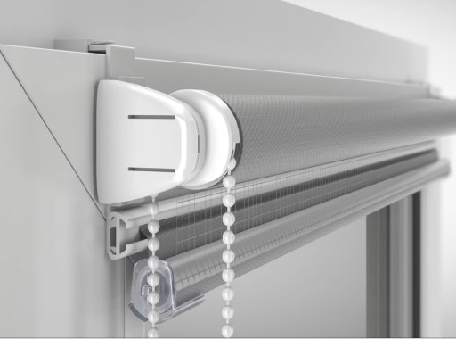 - PROWADZENIE ŻYŁKOWE - przytrzymuje roletę blisko szyby nawet przy uchylonym oknie oraz zapewniają idealne zwijanie tkaniny na rurkę nawojową