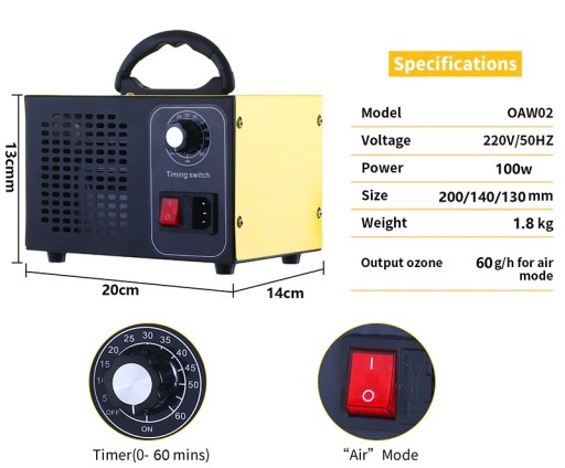 ✅Wbudowany timer umożliwia ustawienie czasu pracy, dzięki czemu nie trzeba narażać się na przebywanie w pomieszczeniu z wysokim stężeniem ozonu.