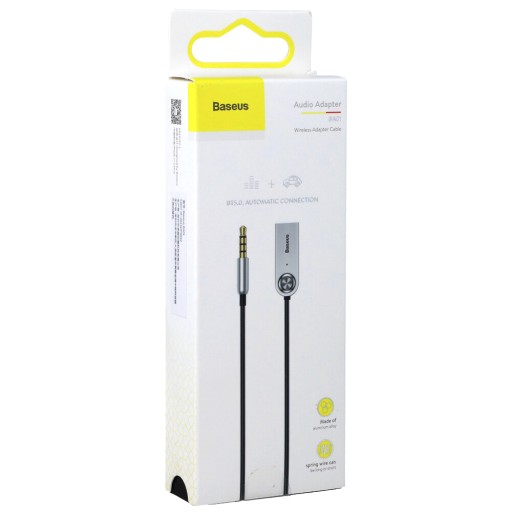 Adapter Audio z Bluetooth 5.0 od producenta Baseus wykonany ze stopu cynku i ABS, przeznaczony dla urządzeń wyposażonych w port 3.5mm Mini Jack.