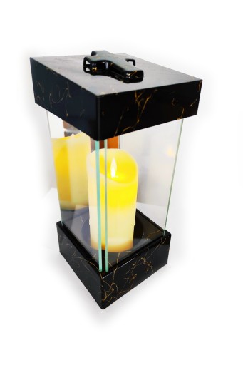 БОЛЬШАЯ СТЕКЛЯННАЯ СВЕЧА-ФОНАРЬ С ЗЕРКАЛОМ, ЧЕРНАЯ