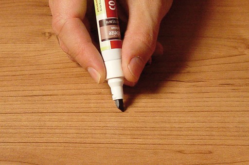 - Strukturę drewna odtworzyć końcówką korektora KOLORFIX, rysując bardzo cienkie kreski imitujące rysunek słojów.