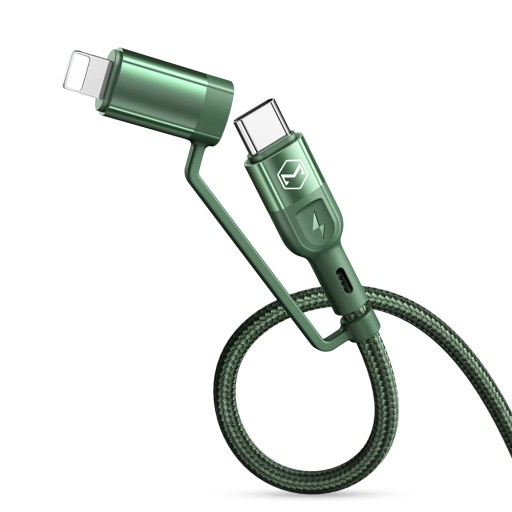 Kabel USB + type-C + Lightning 8 pin 20V 3A o długości 1,2m w oplocie ze zdejmowanymi końcówkami USB / USB-C / Lightning