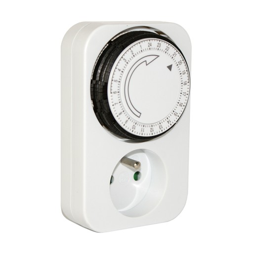 Analogowy programator czasowy służy do automatycznego włączania i wyłączania urządzeń elektrycznych podłączonych do gniazda w trybie 24-godzinnym. Pozwala na zaprogramowanie godzin załączenia i wyłączenia sprzętów elektronicznych. Programator pracuje w cyklu dobowym, minimalny czas nastawienia pomiędzy włączeniem a wyłączeniem wynosi 15 minut. Dzięki temu urządzeniu możesz włączyć np światło w akwarium lub pralkę podczas Twojej nieobecności w domu. Biały kolor urządzenia sprawia, że bardzo dobrze komponuje się z białymi ścianami.