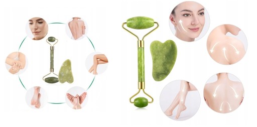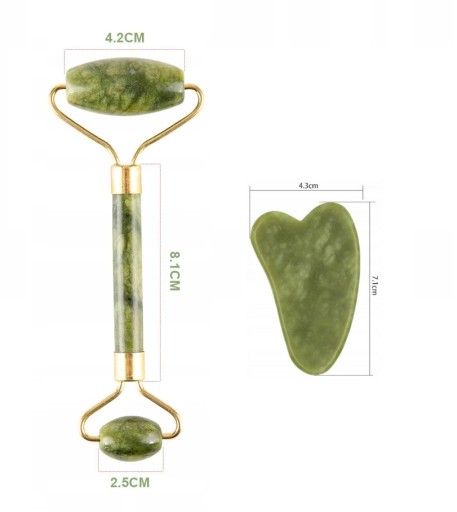 MASAŻER ROLLER DO TWARZY JADEITOWY + KAMIEŃ GUA SHA Z JADEITU MASAŻER DO TWARZY