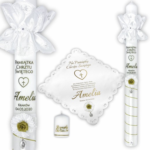 Świeca i szatka do chrztu- imię, data, modlitwa + mała świeczuszka w prezencie