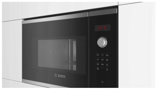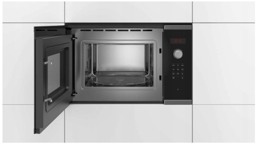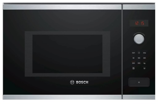 Kuchenka mikrofalowa do zabudowy Bosch BFL553MS0 59 x 38 cm o maksymalnej mocy 900W, w kolorze czarnym, wykonana ze stali szlachetnej umożliwiająca rozmrażanie, podgrzewanie i szybsze przygotowywanie jedzenia.